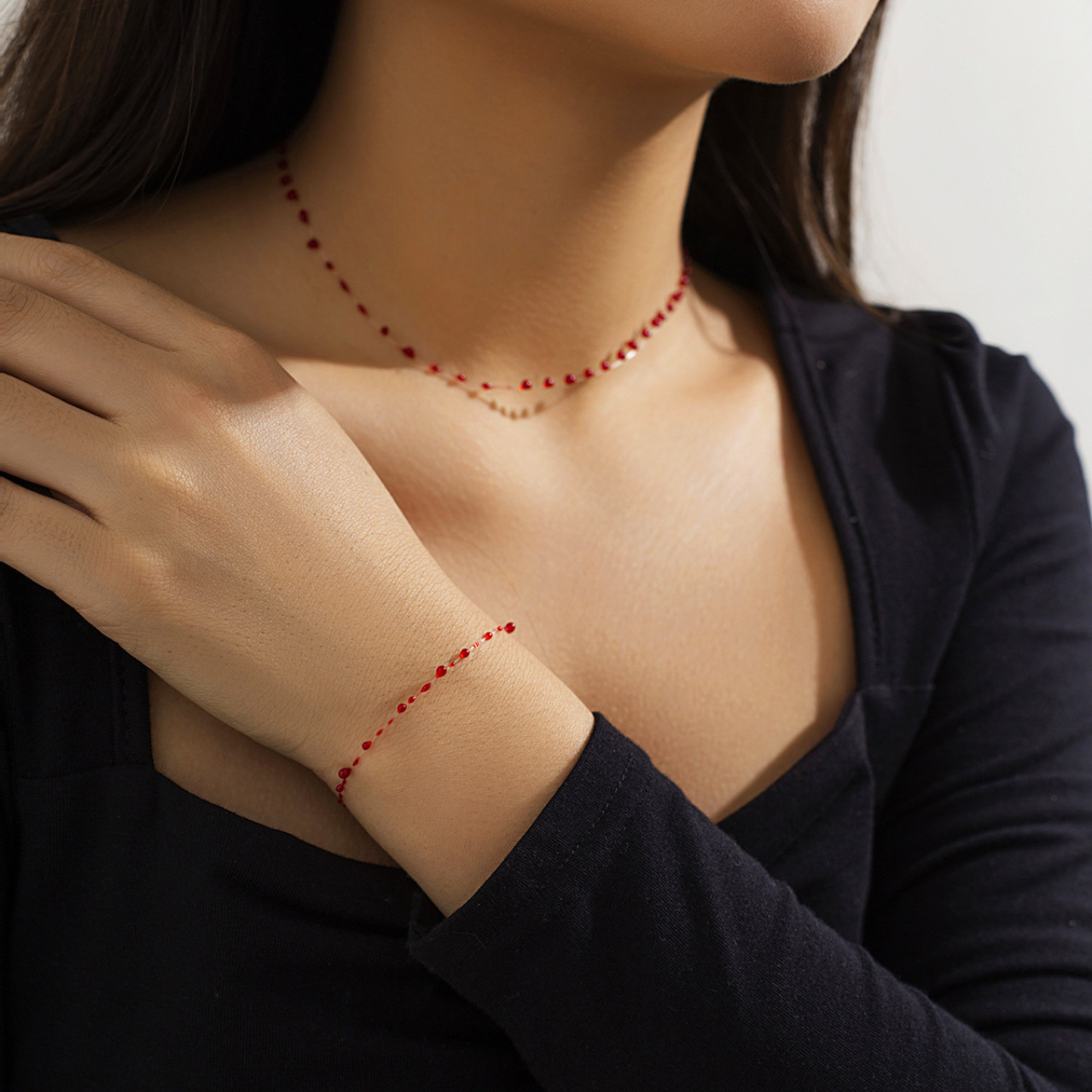 Dive into the depths of style with our Gothic Blood Drop Tassel Choker and Dyed Blood Bracelet Set! This fierce ensemble features: