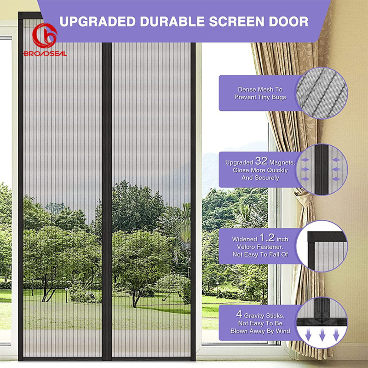 This Magnetic Door Screen features a self-sealing design that ensures a perfect closure every time, keeping mosquitoes and flies out while allowing fresh air to flow freely into your home.