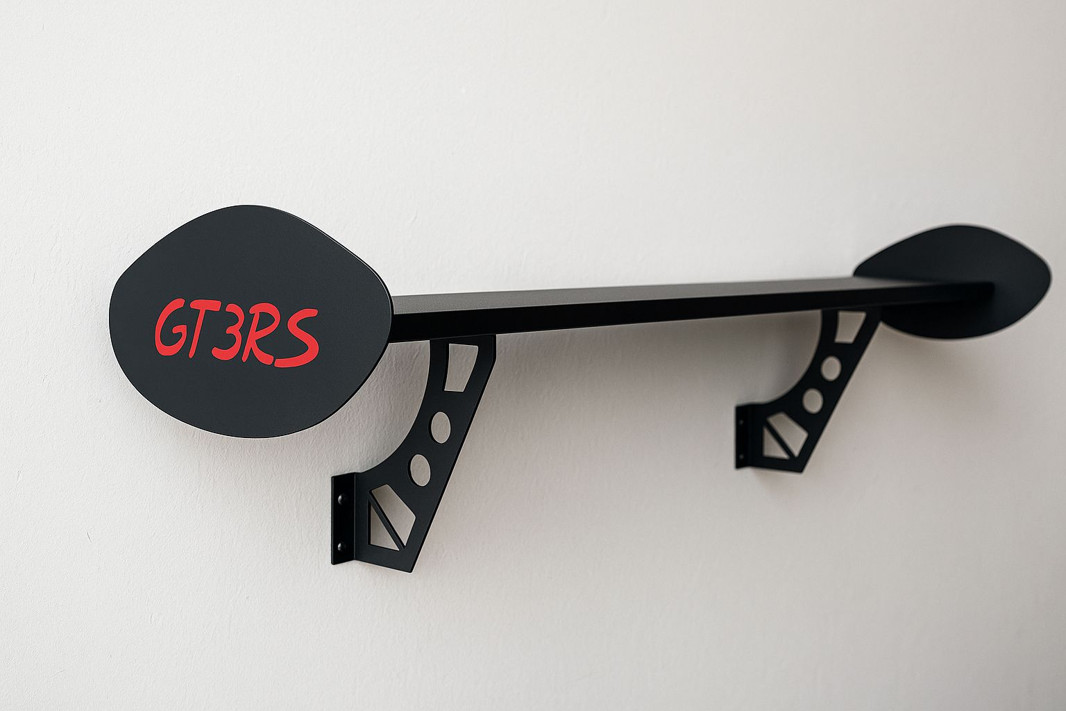 Bring the thrill of motorsport to your living space with the GT3 RS Wing Spoiler Shelf a perfect blend of performance-inspired design and practical utility. Inspired by the legendary Porsche GT3 RS, this wall-mounted shelf mimics the aggressive, aerodynamic lines of a race car’s rear wing, making it the ideal addition for car enthusiasts, gearheads, and collectors.